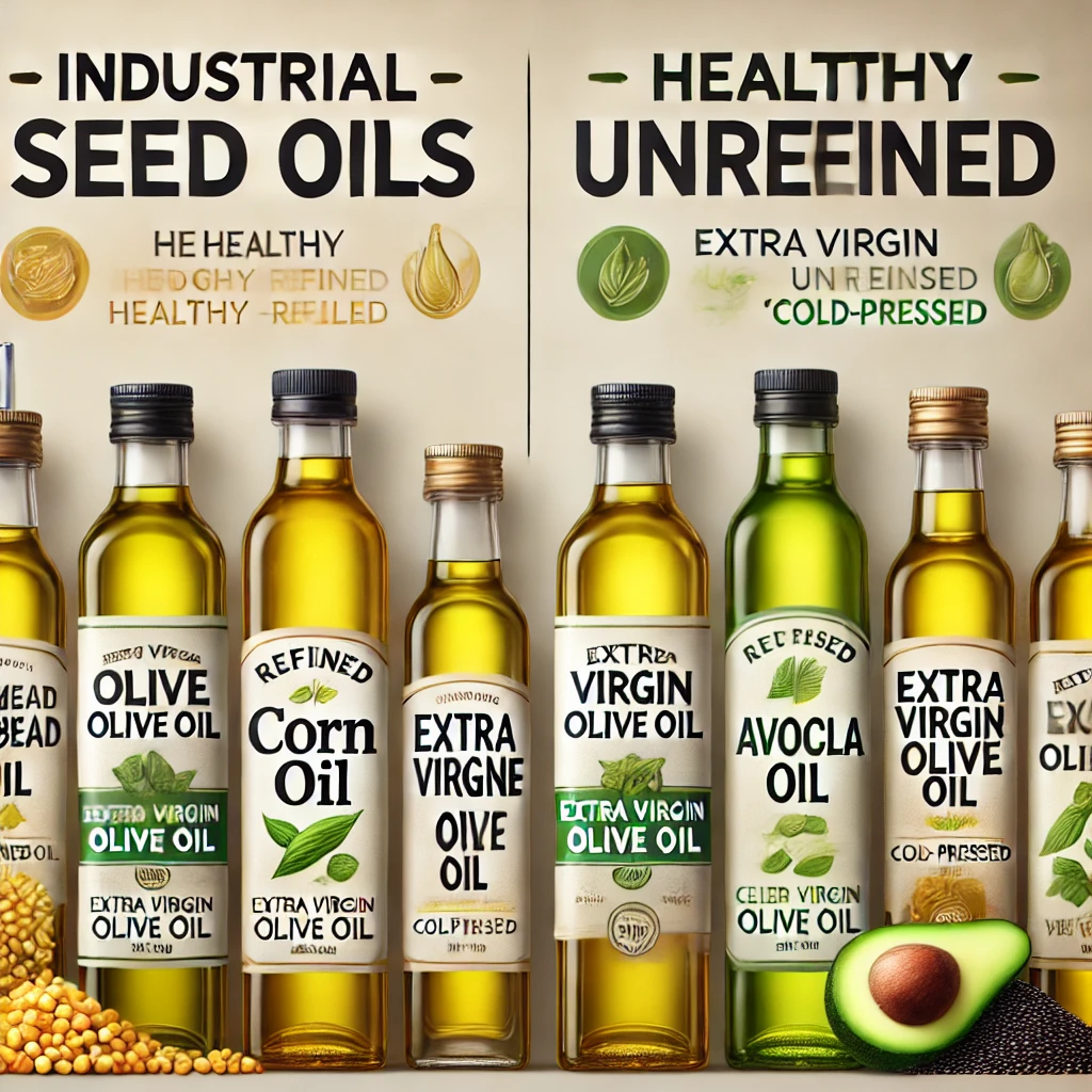 Alt text (SEO): "Comparison of industrial seed oils and healthy unrefined oils"