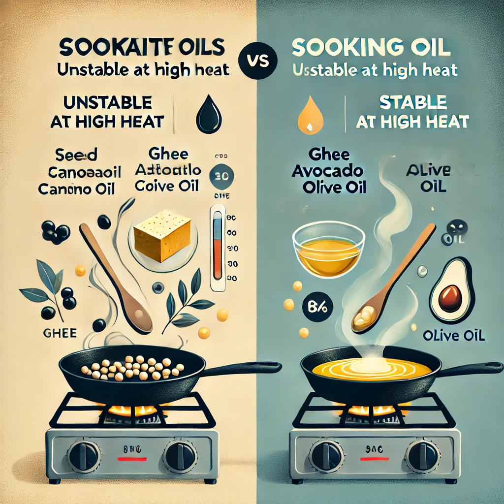 Alt text (SEO): "Cooking with seed oils at high heat vs cold-pressed oil stability"