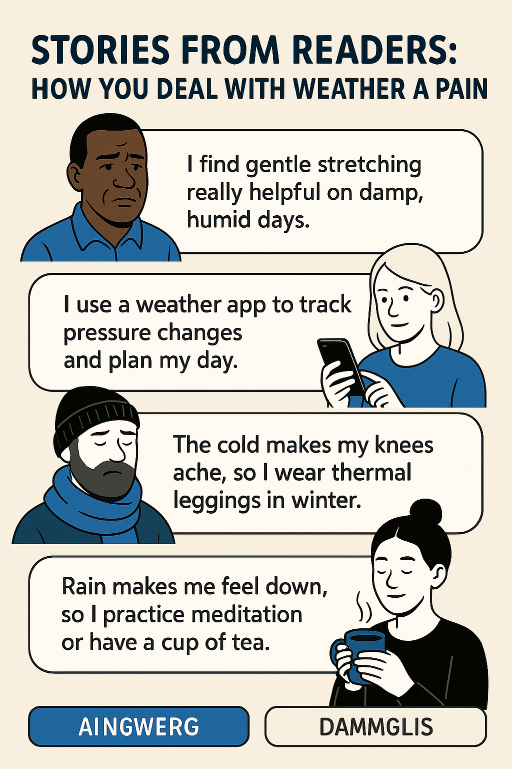 - This post shares real stories from readers on how they cope with pain linked to rain, humidity, and barometric pressure shifts.