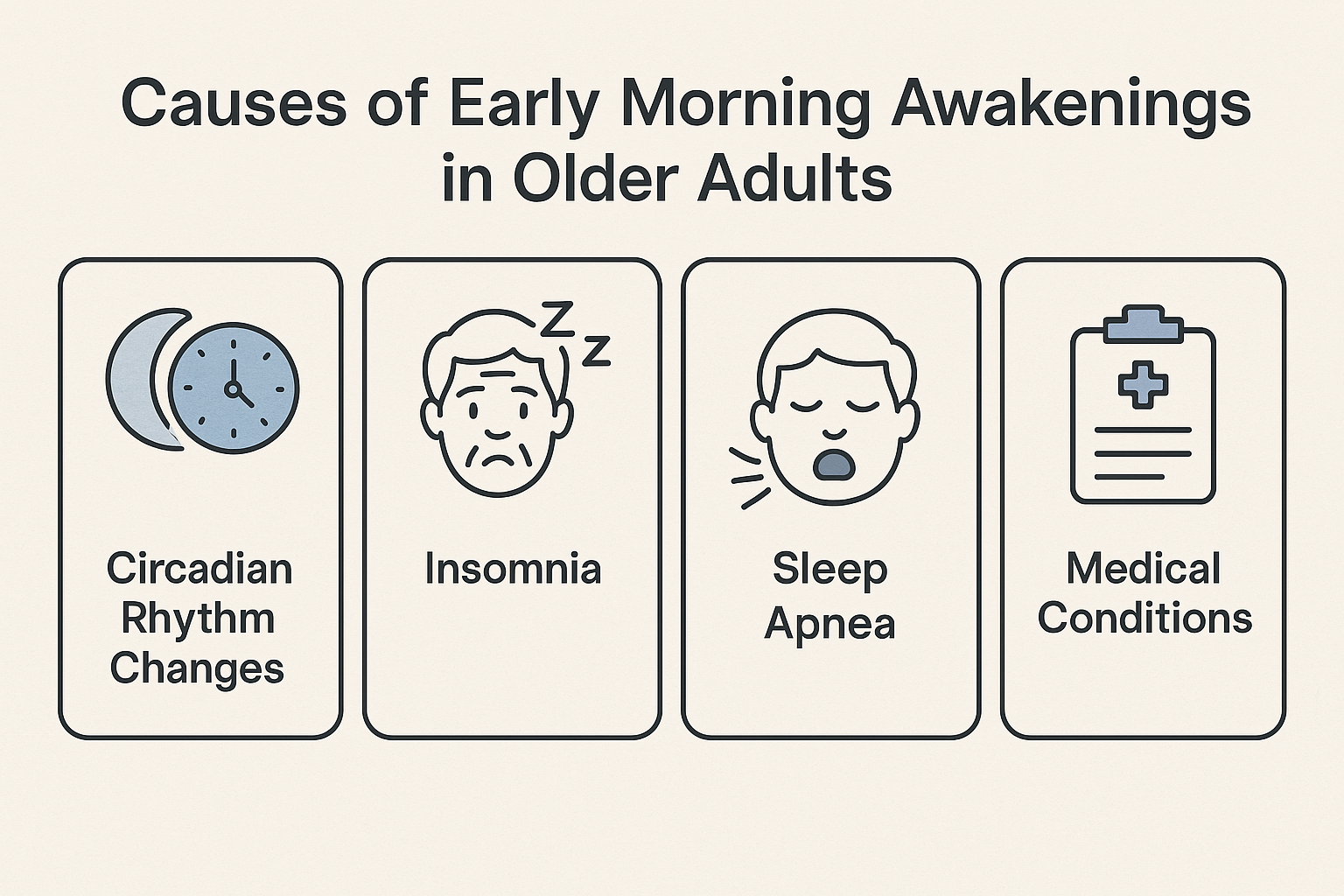 TL;DR Older adults frequently experience early morning awakenings due to changes in circadian rhythms, reduced melatonin, chronic health conditions, and environmental sensitivities. These awakenings often fragment sleep and reduce its restorative quality, but several behavioral and biological strategies can improve outcomes.
