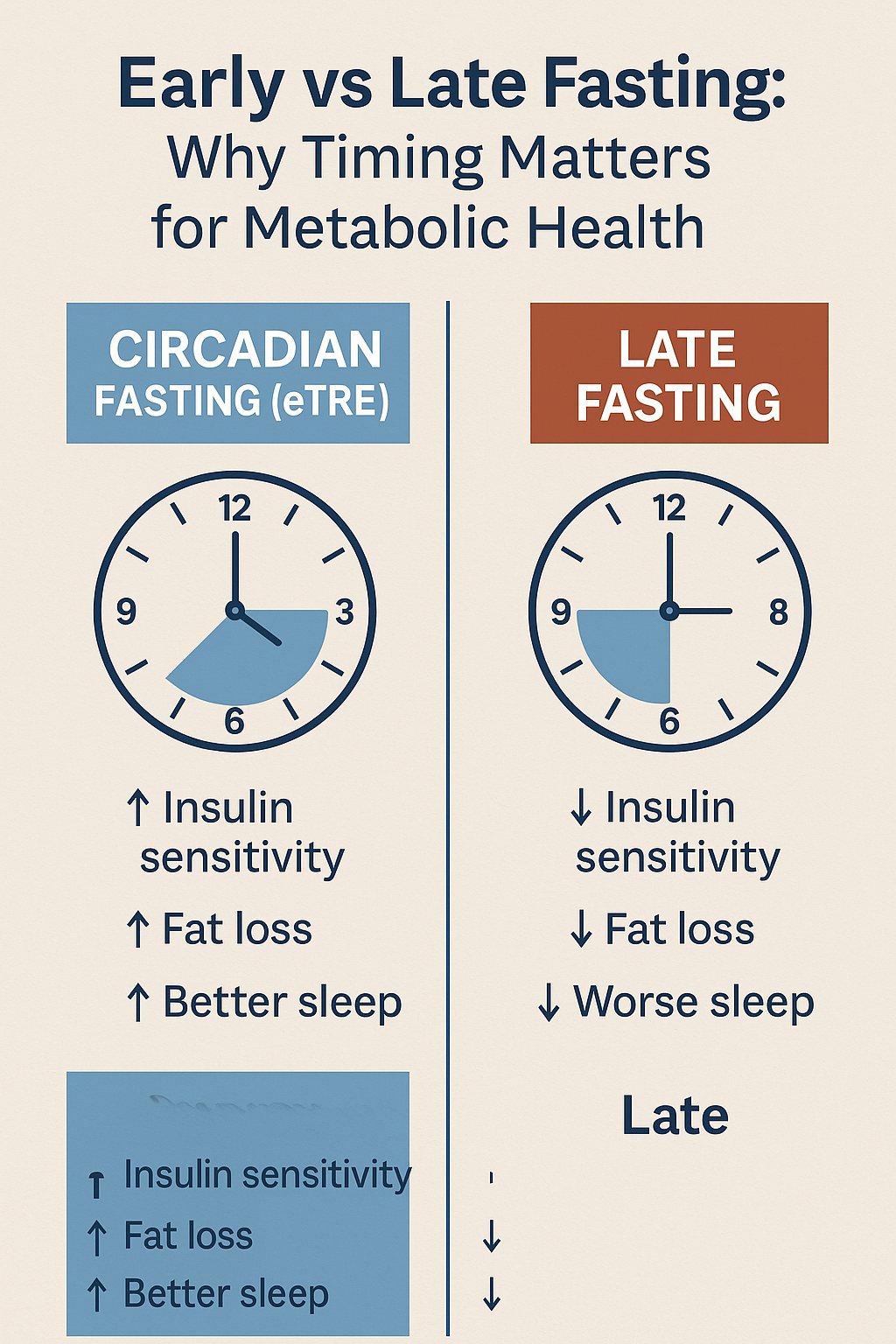 - Early Time-Restricted Eating (eTRE)—eating earlier in the day—is more effective than late fasting for fat loss, insulin sensitivity, and inflammation control.