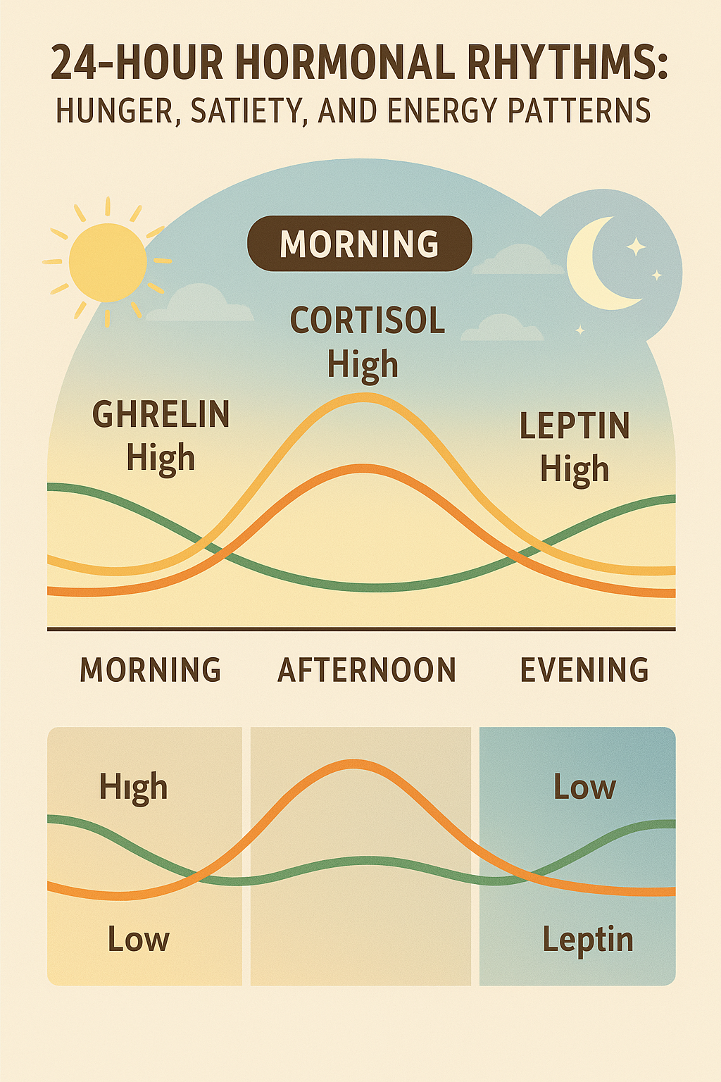 - Your hunger isn’t random—it follows a hormonal rhythm driven by ghrelin, leptin, and cortisol.