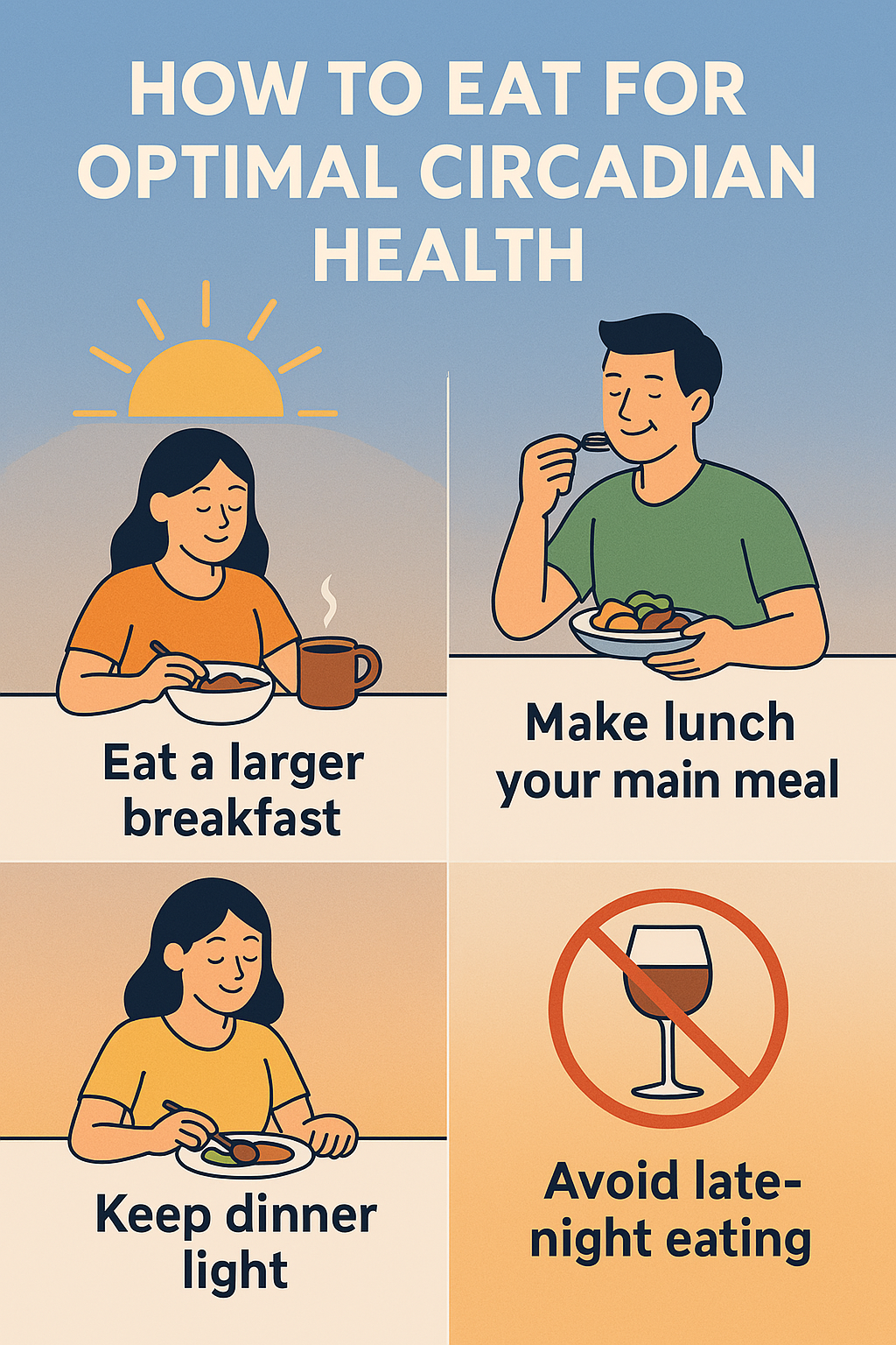 - Eating in sync with your circadian rhythm helps restore hormonal balance, reduce appetite, and improve metabolic health.