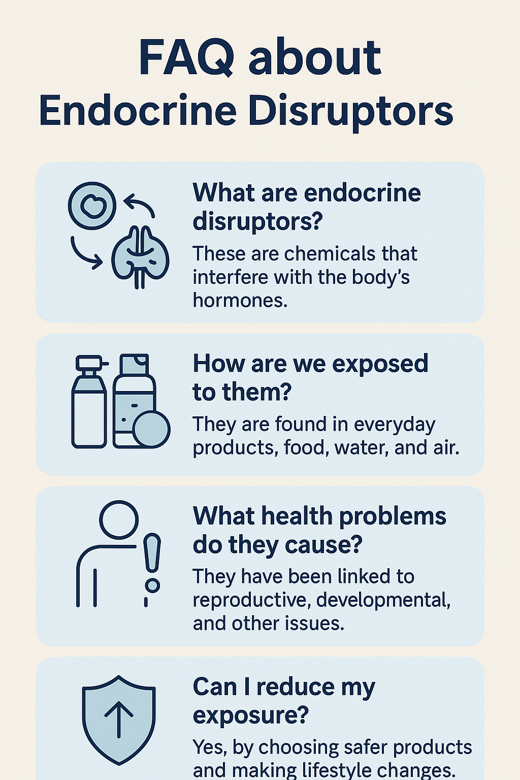 1. Can small amounts of EDCs really harm my health? Yes. EDCs act in parts-per-trillion and can mimic hormones at incredibly low doses. Chronic low-dose exposure is a major concern, especially during critical windows like pregnancy or puberty.