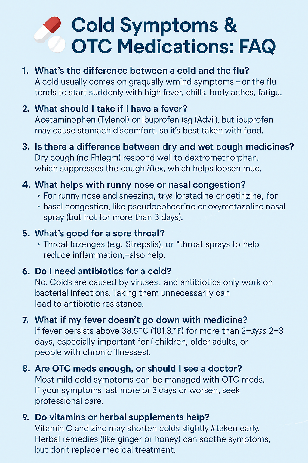 โ Cold Symptoms & OTC Medications – FAQ (For Readers)