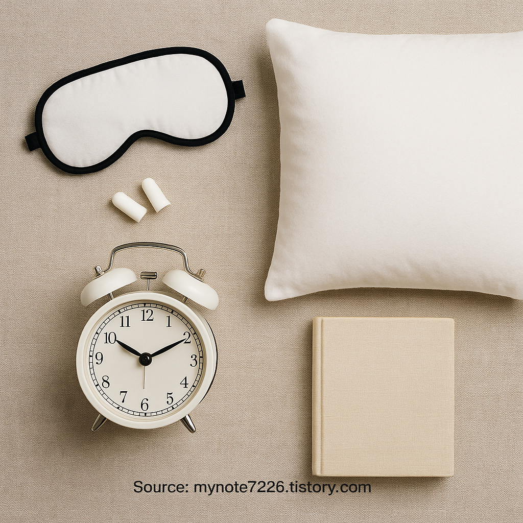 Alt text: Flat lay of perfect sleep setup. Source: mynote7226.tistory.com