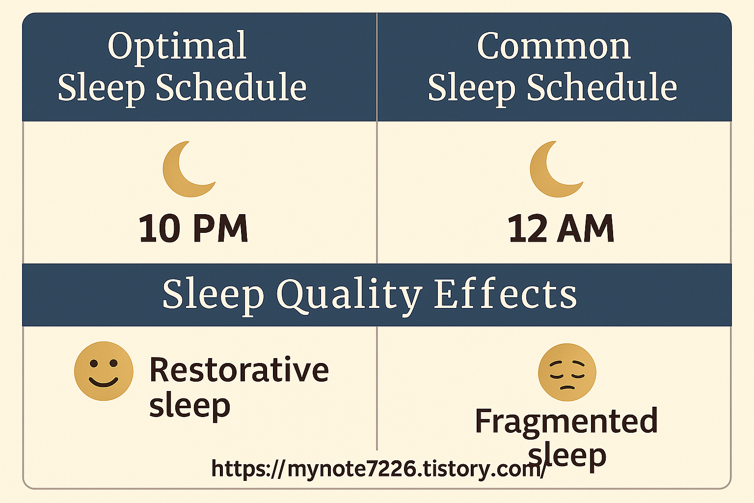 alt text: Comparison chart: "Optimal vs. Common Sleep Schedule + Sleep Quality Effects"