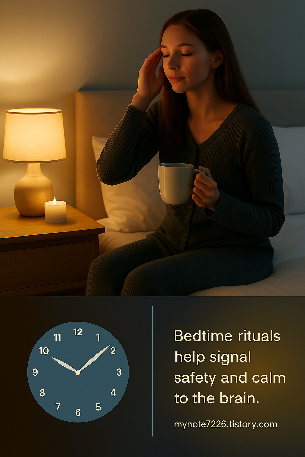 Alt Text: "Bedtime rituals help signal safety and calm to the brain – Blog: mynote7226.tistory.com"