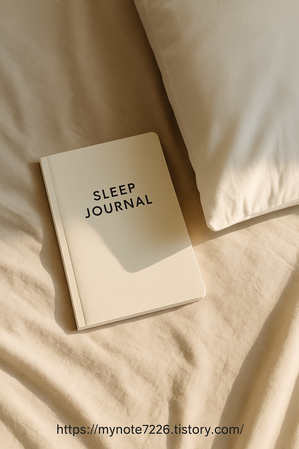 Alt text: "A minimalist sleep journal beside a bed pillow with morning light."